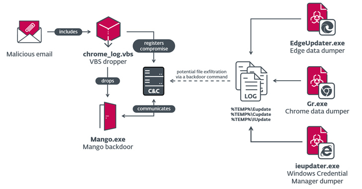 The campaigns, dubbed Outer Space and Juicy Mix, entailed the use of two previously documented first-stage backdoors called Solar and Mango, which were deployed to collect sensitive information from major browsers and the Windows Credential